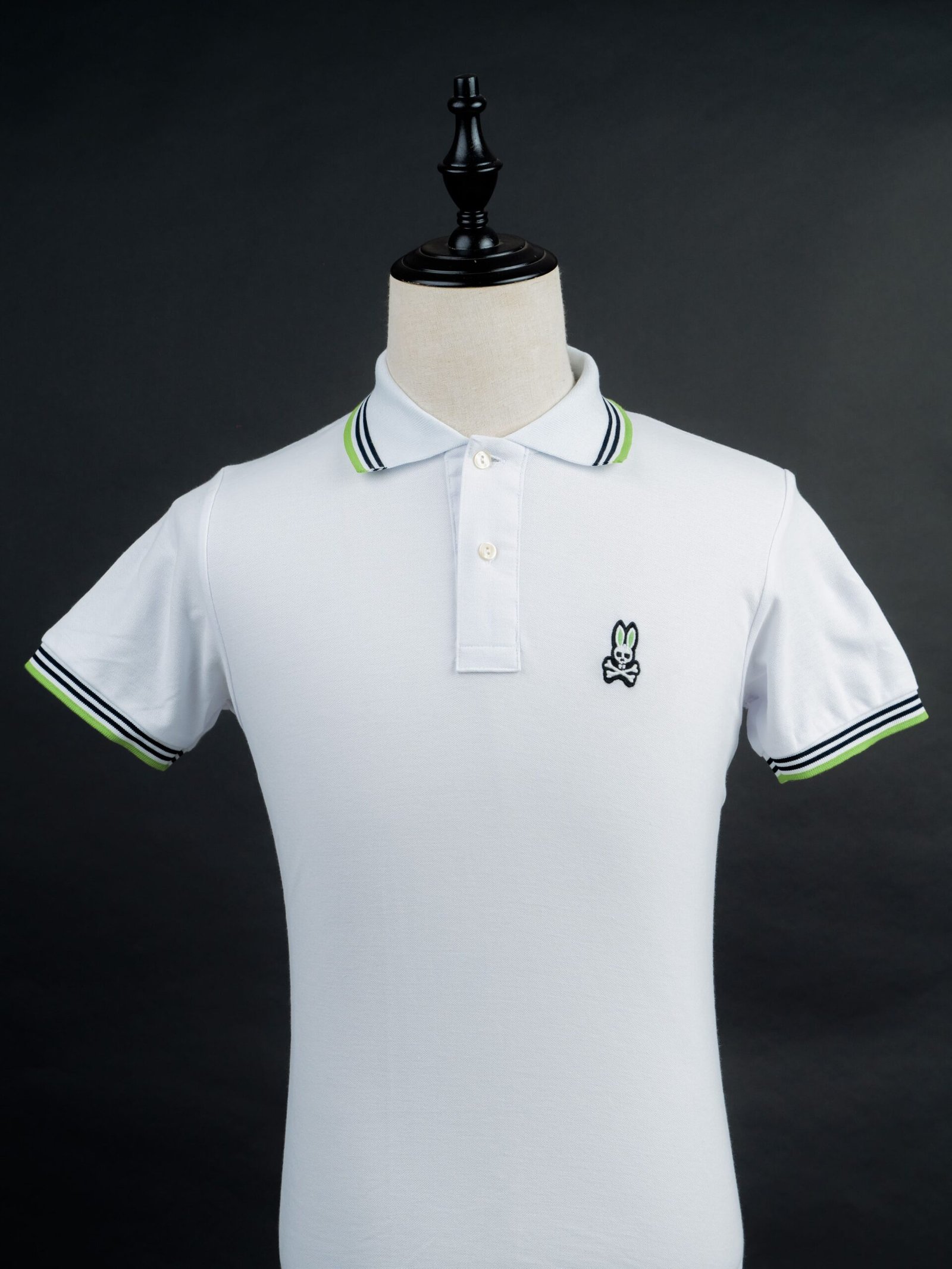 Color: Blanco con cuello verde y azul